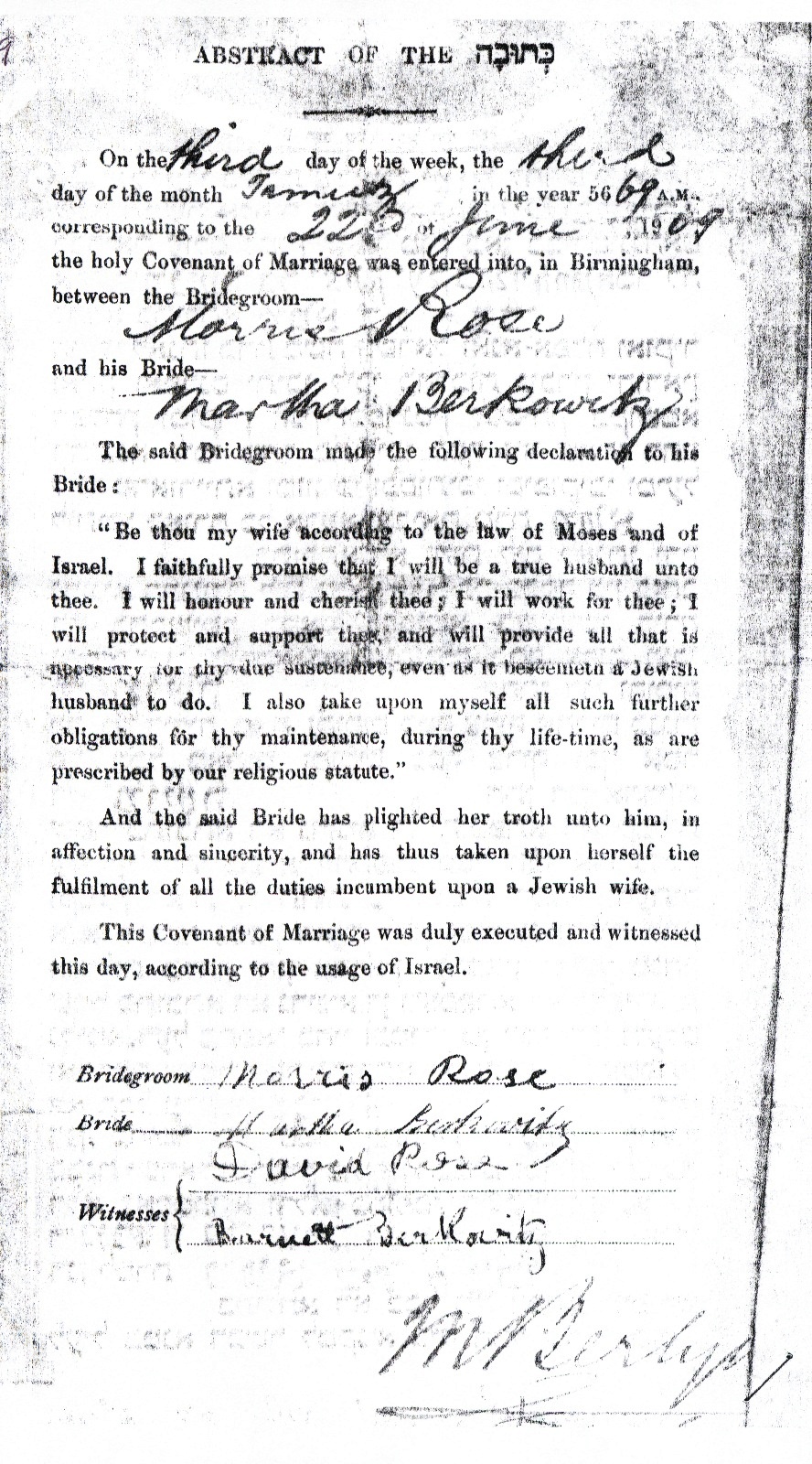 It was Abraham who, in a letter dated 13 June 1971, wrote to his nephew, Samuel Rose (son of Morris Rose), providing invaluable information about the Rosenof family.