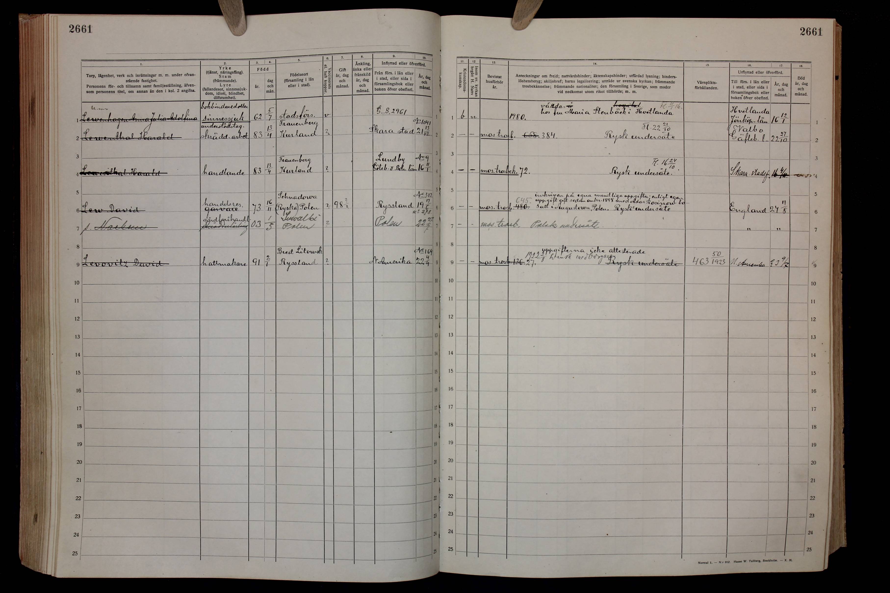 The outbreak of WWI in 1914 found Dovid Lev in Sweden on business. Described as a commercial traveller, he was in fact a travelling salesman. We do not know what he was selling in Sweden when the war started in 1914, but we do know that, unable to return to his home in Russian Poland, he sold matches in order to survive.