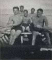 | 1942 Ismailia, Egypt Virgin Mary Church | Abraham Grossman and friends rowing in the Suez Canal |