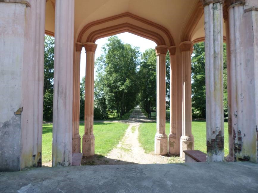 We followed this track which eventually joined up with the main road at the village of Dowspuda. We stopped to look at the ruins of a 19th century palace, called Pac’s palace (Pac was an aristocrat who distinguished himself during the Napoleonic wars). Rows of lime trees lined the road to the castle, with small Soviet-built housing blocks on one side and a government building on the other.