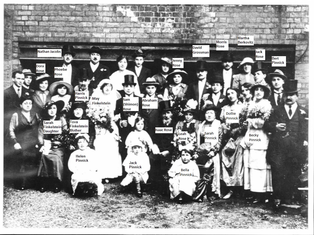We possess a photograph of most of them taken together at the 1948 wedding of Phoebe Crown’s son, Isidore, attended by David and Annie Rose on their one and only trip back to the UK after immigrating to the States in 1910.