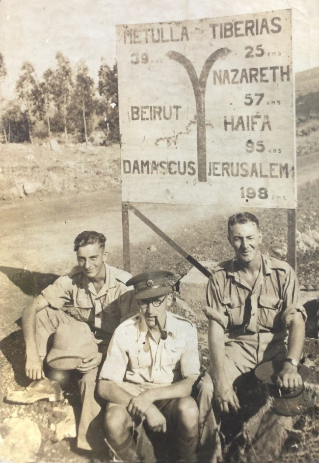Samuel and two friends in Palestine near the border with Lebanon, not far from where the author lives todaySamuel must have also been in Eritrea, where be bought an English-language newspaper on 17 March 1944.
